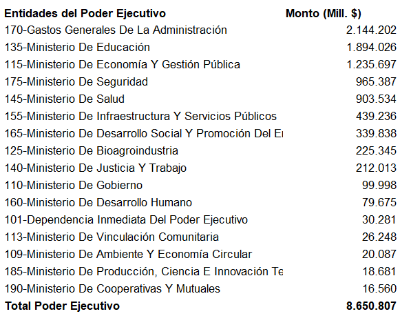 - Aportes a establecimientos e instituciones privadas adscriptos a la enseñanza oficial de la Provincia de niveles inicial, primario, medio, especial y superior.